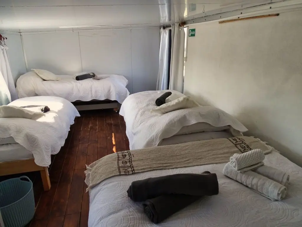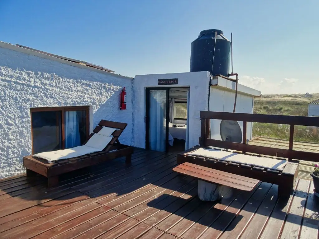 Suite Cangrejos: pueden alojarse hasta 5 personas, cuenta con una cama matrimonial y tres indivuduales. Equipada con ropa de cama, toallas, sombrillas y reposeras de playa.